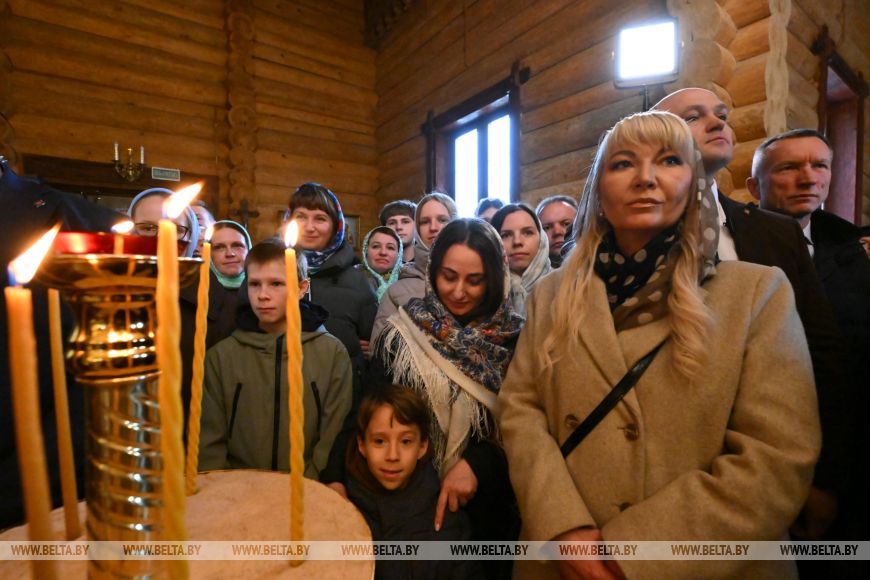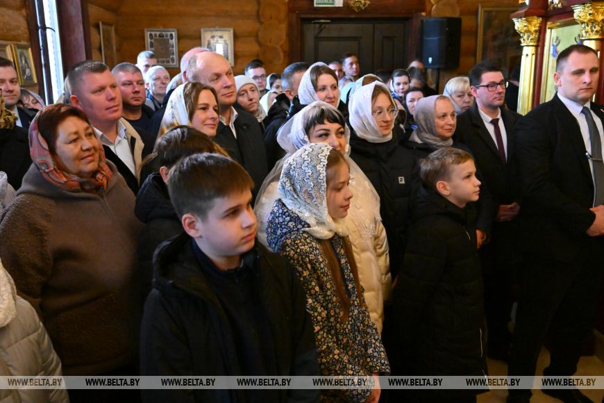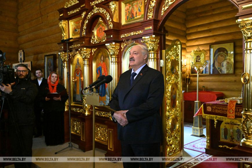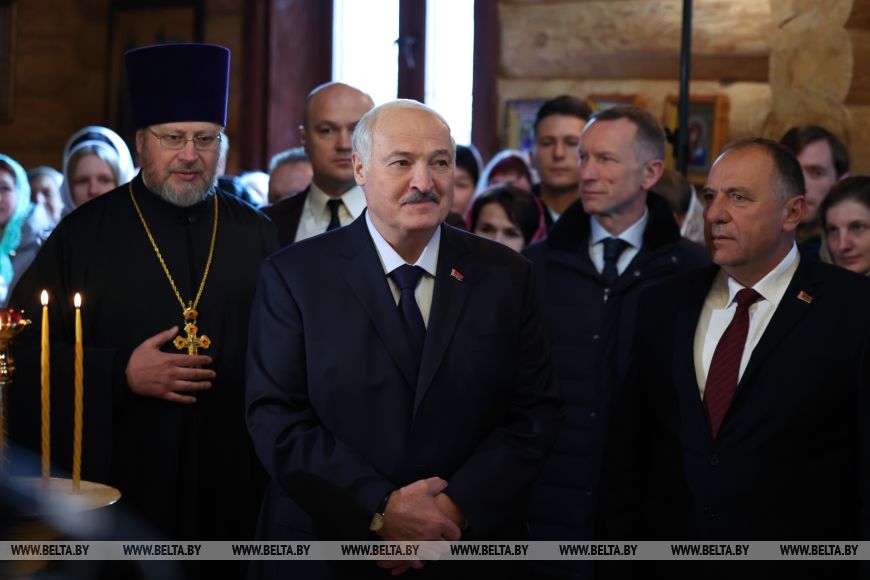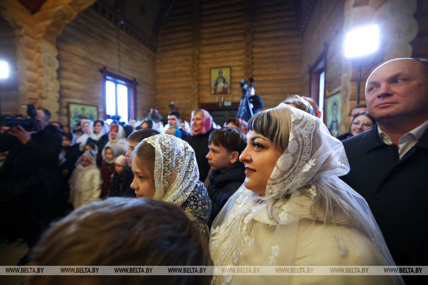 «Много лет назад я бывал здесь не единожды. Помню, где-то здесь была ферма. Помню каждый километр дороги. Тем более что я раньше работал с вами. Помню руководителя вашего хозяйства, Александра Андреевича Попкова, с которым пришлось еще работать в Минске, — рассказал глава государства. — Приятно видеть ваши добрые и как всегда улыбчивые глаза. Приятно бывать в таком храме. Откровенно говоря, это любимые мои храмы — которые построены просто, без помпезности, особенно если они исполнены в дереве».